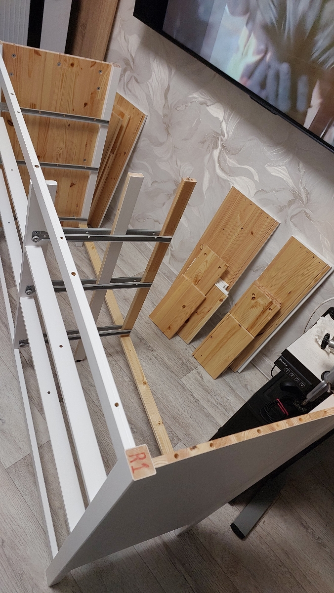 Так как мебель изготовлена из массива дерева, собирать изделие рекомендуется только отверткой, для того чтобы избежать трещин массива при сборке.