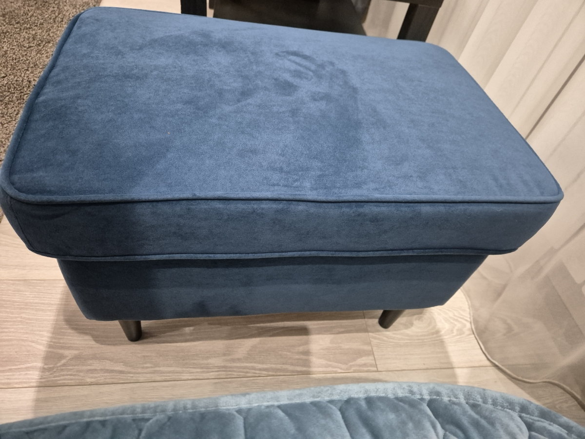 Каркас пуфа выполнен из ЛДСП, ножки из массива дерева, наполнитель сидушки пенополиуретан, обивка выполнена из велюра.