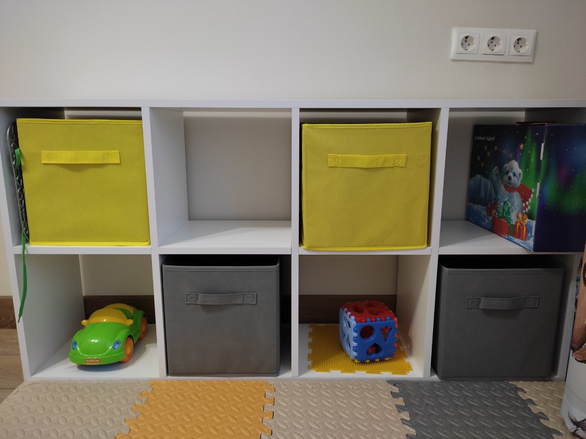Я хотела стеллаж с целиковыми длинными сторонами, без лишних стыковок, и с небольшими ячейками (не 33*33). Этот стеллаж соответствует всем этим ожиданиям.